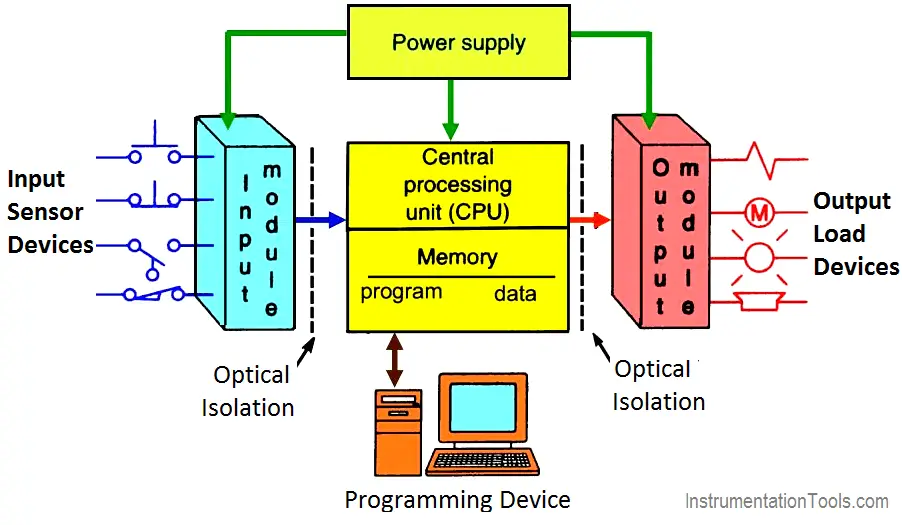 A Programmable Logic Controller (PLC) or Programmable Controller is a rugged industrial computer suitable for controlling manufacturing processes, such as assembly lines, machinery, robotic devices, or any activity requiring high reliability, ease of programming, and process fault diagnosis.