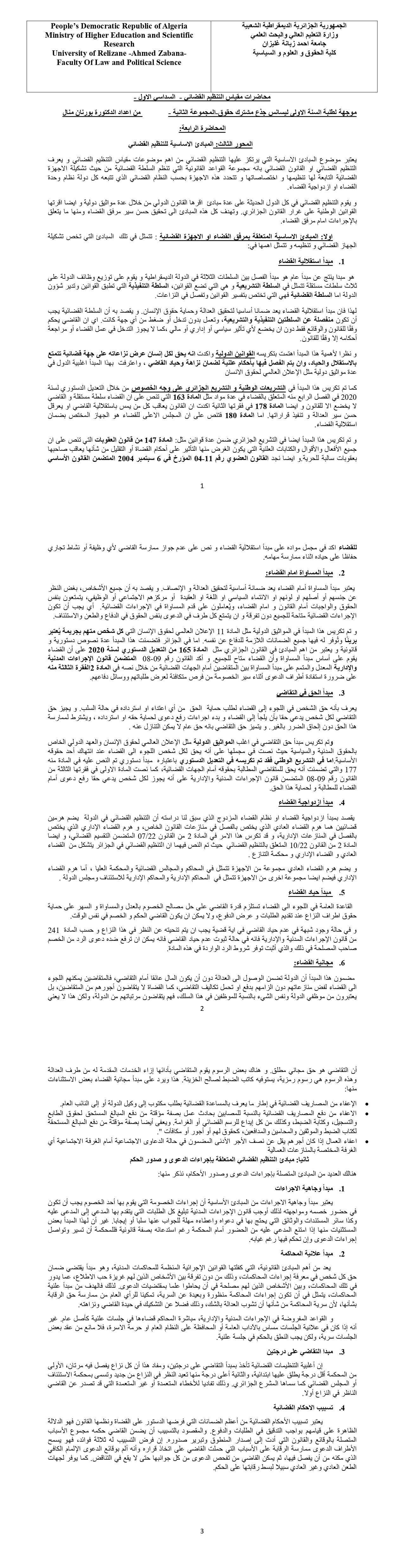 Faculté de Droit / فرع الحقوق / طور الماستر / تخصص قانون خاص / السنة الثانية ماستر / السداسي الرابع