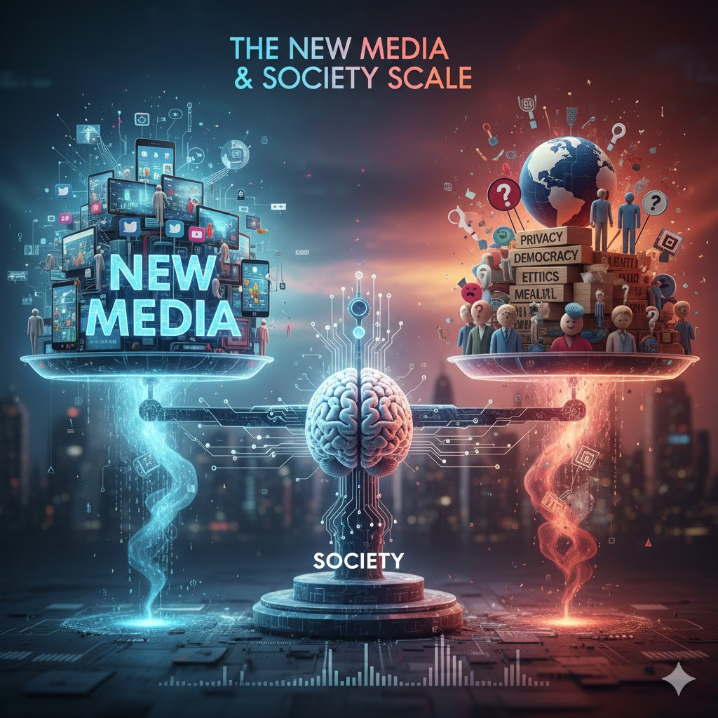 يهدف مقياس الوسائط الجديدة وقضايا المجتمع إلى دراسة التحولات الكبرى التي عرفها الإعلام عبر تاريخه، وكيف أثرت كل مرحلة إعلامية في البنية الاجتماعية والثقافية والسياسية للمجتمعات. يبدأ المقياس بتحليل خصائص الوسائط التقليدية كالإذاعة والتلفزيون، ثم ينتقل إلى الفضائيات فالإنترنت وصولاً إلى وسائل التواصل الاجتماعي والوسائط الرقمية المعاصرة.