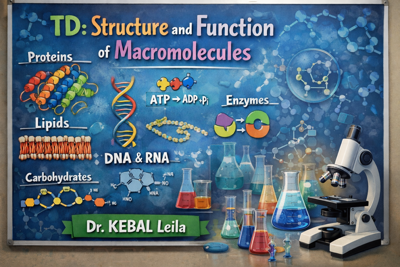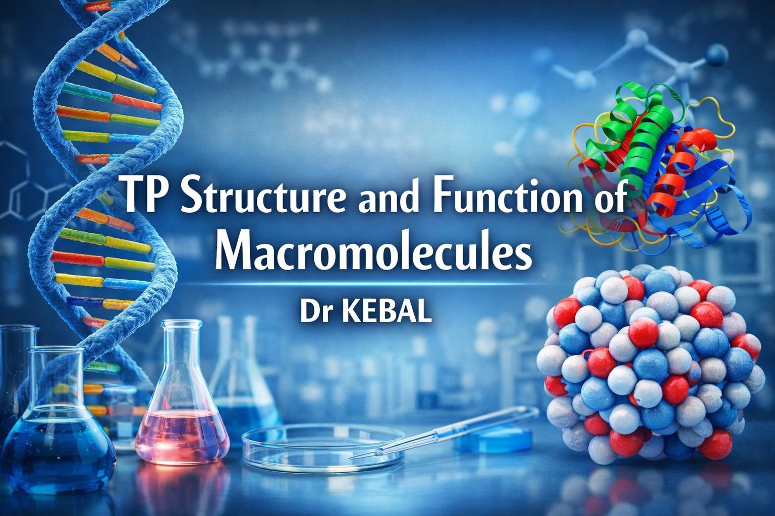 This TD aims to provide Master 1 students (Applied biochemistry) with a comprehensive understanding of the structure, chemical properties, and biological functions of macromolecules. Macromolecules—including proteins, nucleic acids, carbohydrates, and lipids which are fundamental components of all living organisms. Understanding their structure-function relationships is essential for applications in biochemistry, molecular biology, and biotechnology.