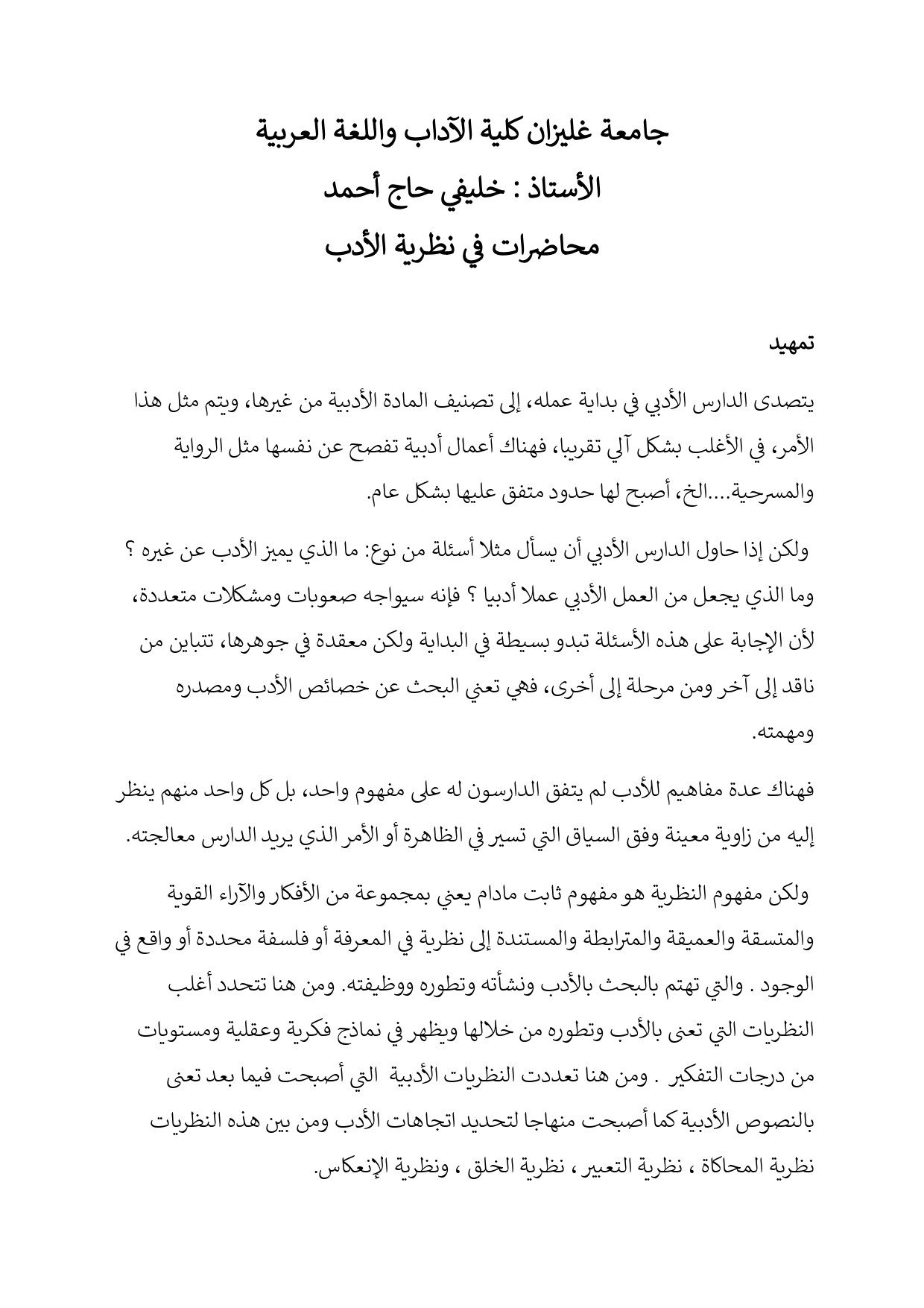 محاضرات في نظرية الأدب