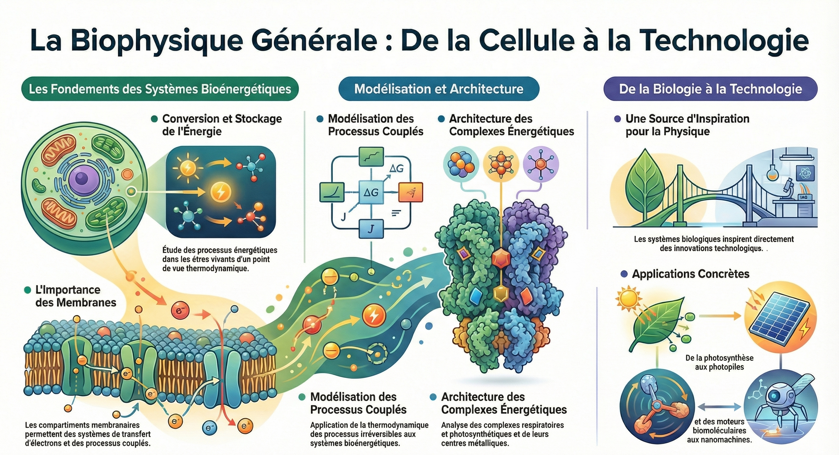 Ce cours offre une bonne connaissance en biophysique et bioénergétique, ainsi qu’aux différentes techniques de caractérisation et de synthèse utilisées.