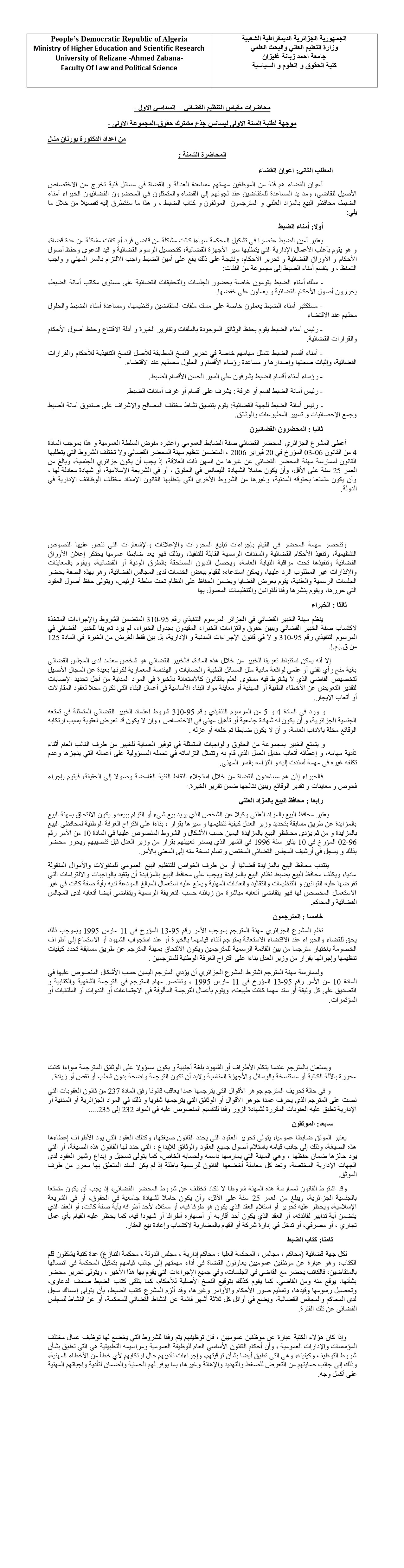 التنظيم القضائي المجموعة الاولى المحاضرة الثامنة